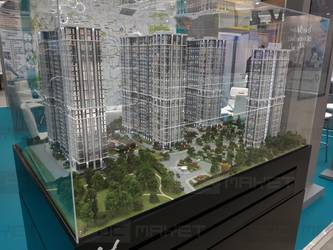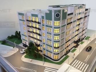 В конструкции основания макета предусмотрены выдвижение модули с планировками квартир в м 1:30