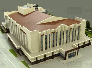 Архитектурный макет Дома Культуры визуализирует основные конструктивные элементы здания, позволяет оценить экстерьер и интерьер с точки зрения эстетичности и функциональности. Эффектная трехмерная модель в масштабе 1:100 отлично подходит для выставочных и демонстрационных целей. Особенность модели – частичное отсутствие крыши. Наша макетная мастерская использовала этот прием, чтобы продемонстрировать оформление зрительного зала, холла, вестибюля и зон отдыха.