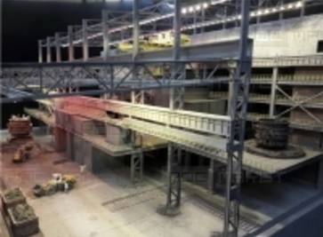 Промышленный макет завода «Амурсталь» выполнен в масштабе 1:200 и установлен на подмакетник размером 1200×1200 мм. Реалистичная трехмерная копия наглядно отображает один из участков технологической линии, позволяет продемонстрировать преимущества и возможности производства. Для изготовления модели в макетной мастерской использовали долговечные материалы – оргстекло и полистирол. Дополнением служит RGB-подсветка, которая акцентирует внимание на ключевых элементах прототипа.