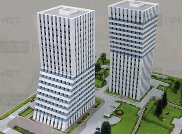 Макет «ЖК с ФОК и подземной автостоянкой» СВАО ,ул.Искры изготовлен к 18-й выставке недвижимости «ДОМЭКСПО-Россия» 2008г. в «Гостином дворе»
