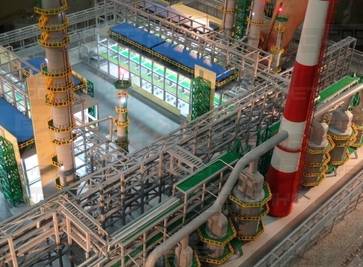 Макет в масштабе 1:180 позволяет оценить масштабы и возможности производственного комплекса по изомеризации пентан-гексановой фракции. Оборудование широко используют в нефтехимической промышленности для получения высокооктановых бензинов и изопренового каучука. Макетная мастерская выполнила модель в точном соответствии с оригиналом. Композиция дает визуальное представление об организации технологических процессов и принципе работы оборудования. Детализированный макет выполнен из пластика и оргстекла и дополнен светодиодной подсветкой.