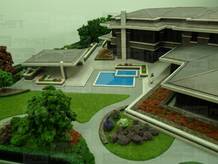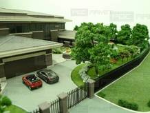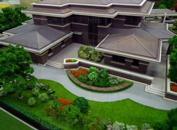 В макете дома предусмотрена съёмная кровля для показа интереьреа и планировки. Растительность и насаждения выпонены в соответсвии с дизайн-альбомом.