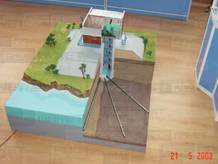 Макет лучевого водозабора изготовлен в масштабе 1:100 из оргстекла, пластика и картона. Промышленный прототип дает представление о размерах и основных конструкционных элементах гидротехнического сооружения, предназначенного для отвода грунтовых вод. На макете можно увидеть шахтный колодец и радиальные водозаборные скважины. Наша макетная мастерская выполнила модель согласно техническому заданию заказчика для демонстрационных и рекламных целей.
