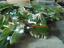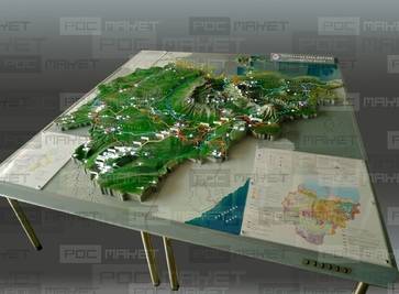 Макетная мастерская реализовала макет объемной карты республики Саха (Якутия), который демонстрирует проект сети развития автомобильных дорог региона. Модель состоит из подмакетника (4 части) с изображениями на плоскости и трехмерными элементами. Реалистичная копия отображает особенности рельефа и ландшафта, дает представление о расположении и протяженности будущих автомагистралей. Для изготовления макета использовали гипсовые полимеры, лакокрасочные составы, текстиль и бутафорию.