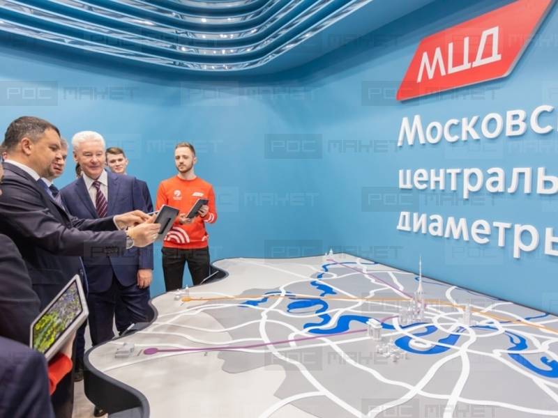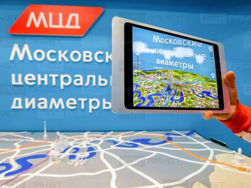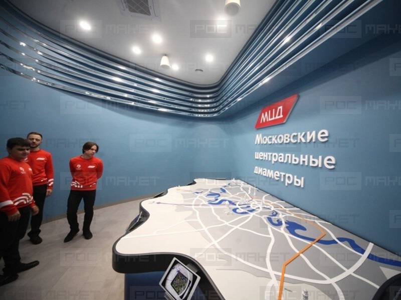 Концептуальный макет Московских центральных диаметров выполнен в условном масштабе из МДФ, полистирола и оргстекла. Композиция предназначена для участия в профильных выставках и форумах. На модели показана система внеуличных железнодорожных путей, среди которых есть готовые, проектируемые и строящиеся. Наша макетная мастерская в Москве использовала в этой модели технологии виртуальной реальности, которые позволяют ярко и наглядно презентовать проект и продемонстрировать его преимущества.