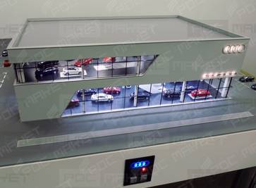 Макет разработан для компании "Ауди". Макет демонстирует архитетуру и интерьер терминала, расстановку оборудования и авто для продаж.